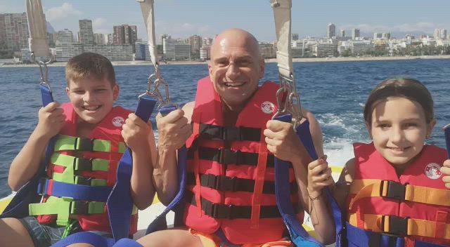Parasailing Benidorm. Fly over the Sea aboard a parachute. You can fly up to 5 people at the same time. The experience lasts from 30 minutes to an hour depending on the number of people on the boat. On the boat you will go with music to liven up the trip and you will take a boat trip around the bay. The parachute flight lasts 15 minutes and you will fly at an approximate altitude of 15o meters.